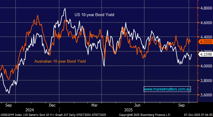 Longer dated bond yields have rotated around current levels since late 2024 as traders weigh up sticky inflation against the occasional sign of a softening economy. It may be a touch early to “bet” longer dated yields will fall below 4%, especially with recent news out of France and Japan, but that is the direction we ultimately believe they will travel.