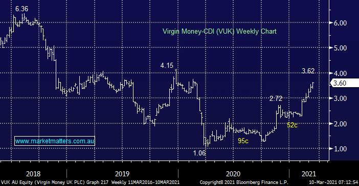 MM is heavily exposed to the banking sector which has enjoyed a great run in 2021, we are now looking to take some, note not all, profit into the current strength e.g. year to date Westpac (WBC) is +29% and Virgin Money (VUK) +52%.