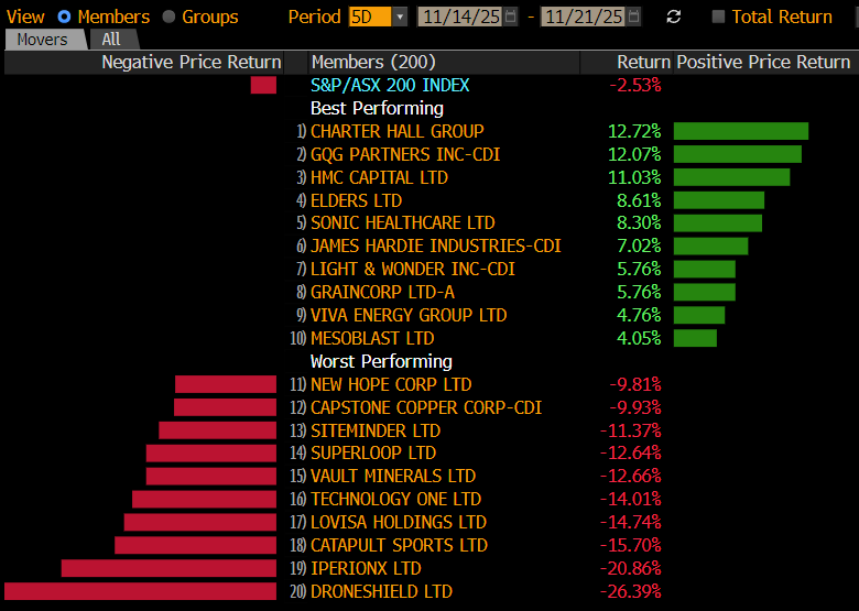 • Seek (SEK) +0.7% held their AGM today, with job ad volumes in line, reaffirming FY26 profit guidance and announcing CAR Group (CAR) +1.6% founder Greg Roebuck will replace Graham Goldsmith as chairman next year.