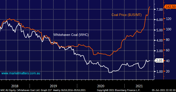 WHC continues to shrug off average / poor operational news and follow the underlying coal price higher, the disconnect between the 2 remains firmly in play and we can see WHC punching well clear of $2 and potentially rallying towards $3 as we slowly move towards 2022. If fossil fuels weren’t so “on the nose” this would be a prime takeover target.