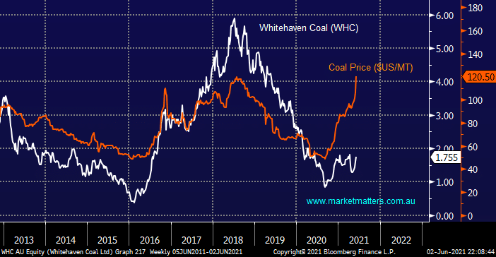 We have discussed the coal price of late alongside Whitehaven Coal (WHC) which has rallied +30% over the last month as it finally embraces the exploding coal price, we are feeling that the oil stocks might follow suit although probably not with the same gusto as WHC which has more than doubled over the last 9-months.
