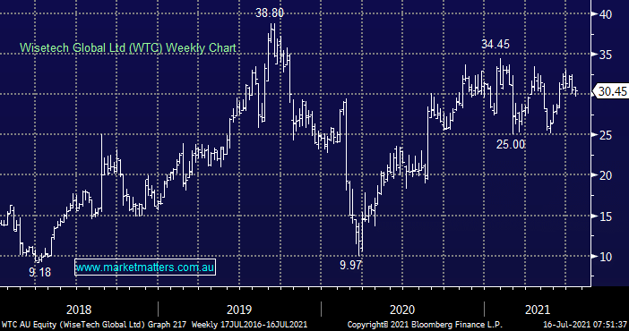 Cloud based logistics software business is performing strongly even as the Tech Sector has started to miss-fire. The company is delivering where it matters with first half revenue up 16% to $238.7m and importantly positive guidance towards the full years. We are bullish WTC looking for a test of all-time highs but considering our large overweight stance towards the sector its likely we would fund any purchase through liquidation of an existing position within the tech space.