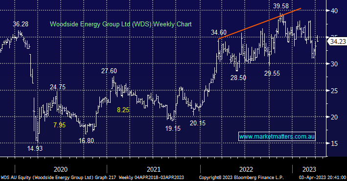- We hold 3% of our Flagship Growth Portfolio in WDS with the $35 area being fair value in our opinion – the market agrees with the level having acted like a magnet for the stock over the last 12 months.