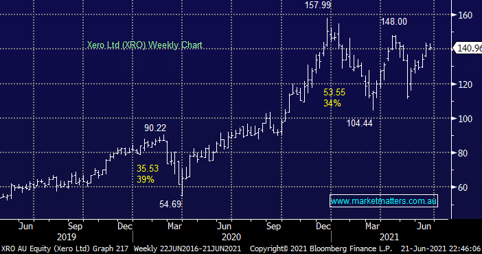 MM recently increased our XRO position to 5% after the stock corrected more than 30%, a great example of the volatility which often roll through the IT Sector. At this stage we remain bullish this quality business targeting fresh all-time highs.