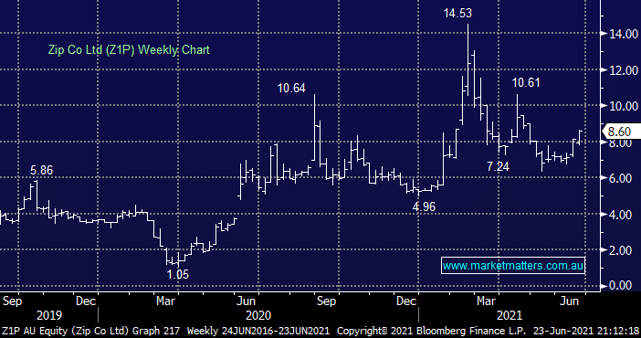 The BNPL space was on fire yesterday – they tend to love a lockdown however I think the news that PayPal was raising merchant fees, a move which most importantly crushed the pessimists argument that margins were set to be squeezed is the more important factor. This is undoubtedly a very volatile space and MM will consider trimming our recently increased Z1P position above $10 but we remain bullish to its ongoing expansion.