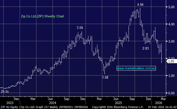 ZIP –34.4%: 1H numbers were solid, but the outlook missed the mark, guiding 2H cash earnings to be broadly flat while bad debts ticked higher. A growth business with no forecasted growth in earnings is a problem.