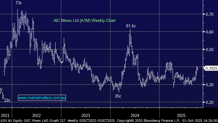 Hi guys, Was wondering if you could provide an update on AIC Mines and what you think it will need/what the market is waiting to see - for it to push above the 42ish cent mark and go higher. Cheers
