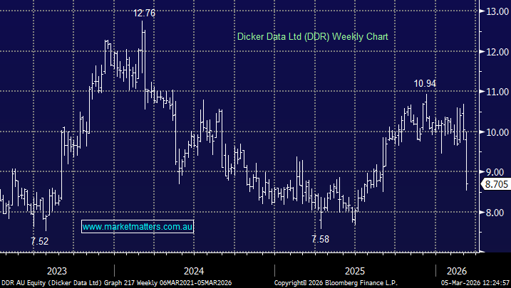 Nothing specific to Stanmore (SMR), although the broader coal sector has been weak. We were surprised by the size of their dividend at their recent result (US8.4 cps v US6.5cps expected) and think that SMR has a suite of long-life assets, that will deliver solid cashflow on good margins and the outlook for steelmaking coal prices remains solid.