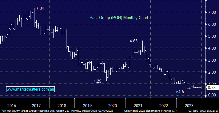 The stock has traded as low as 54c in June and hasn’t been meaningfully above $1.50 for over a year. Our “Gut Feel” is he will bid once more say around 75-80c but otherwise the compelling valuation story starts to fall away, and this deal is more about privatisation than a motivated buyer led takeover.