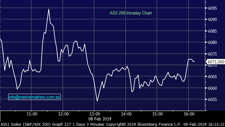 The market pulled back ~21 points today however continued to outperform overseas leads + we saw US Futures down during our time zone. The theme we discussed this morning around “Short SPI Futures / Long S&P spread trade” which seems to be unwinding was obvious again with weakness in US Futures not having the typical negative influence on our market. That could well be a transient thematic however the aggressive about turn by the RBA this week could clearly be a factor.