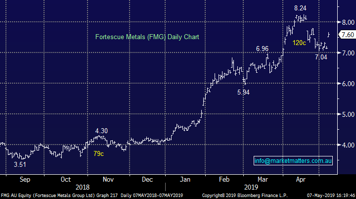 Stocks moving – we saw more pain today in the mining contractor space as the smell surrounding Cimic (CIM) continues to waft through the sector + they are risk on / risk off type stocks and the overall mkt volatility this week hasn’t helped. Emeco (EHL) -1.81% and Ausdrill (ASL) – 2.46% felt some pain. On the flipside, good moves in Bingo (BIN) +4.55% as people starting to realise it looks like an opportunity to buy cheap growth, Costa Group (CGC) +2.43% bouncing back from yesterday’s decline while the tech names were also bought – Afterpay (APT) +3.49% closing at an all-time high of $28.46 & WiseTech (WTC) +4.86% to $23.07, however it was Fortescue (FMG) that topped the boards adding +6.29% on the day to close at $7.60 on the above mentioned news.