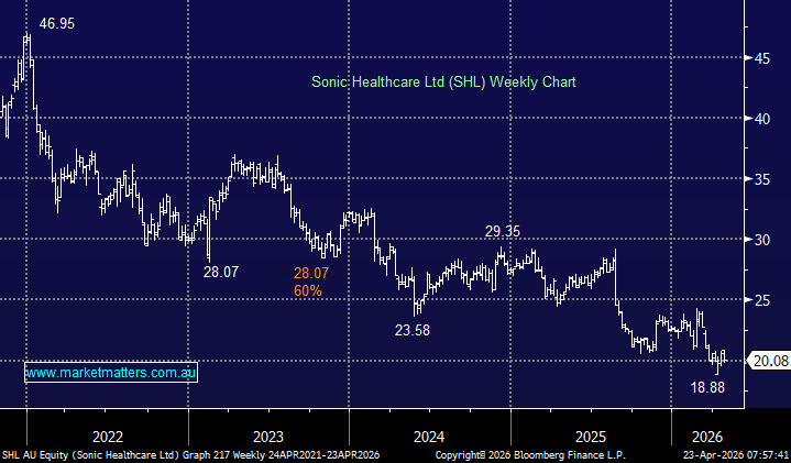 The ASX200 fell sharply on Wednesday, dragged lower by healthcare and banking stocks, while miners offered little support to offset the weakness. The bears dominated the company news, with Cochlear (ASX:COH) -41%, Generation Development (ASX:GDG) -23%, and Bank of Queensland (ASX:BOQ) -9.1% pushing a bounce by Treasury Wine (ASX:TWE) +17% into the shade. The ongoing weakness in the banking sector, combined with heavy selling in healthcare stocks, accounted for more than 95% of the day's decline, underscoring the market's concentration of weakness. Similarly, the trifecta of Commonwealth Bank (ASX:CBA), Cochlear (ASX:COH) and CSL Ltd (ASX:CSL) made up 50% of the day's decline on their own.