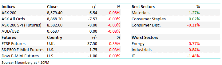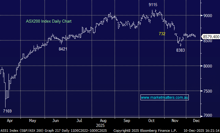 The ASX 200 opened weaker on Monday before trading in another narrow range, eventually finishing the session down just -0.1%. Outside of another impressive session for the lithium stocks, it was a fairly non-committal session with investors and traders alike happy to sit on the sidelines ahead of the RBA today and Fed on Thursday - credit markets are still expecting no change locally and a 0.25% cut in the US, but it’s the accompanying rhetoric that will determine where stocks finish the week.