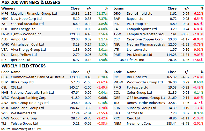 The ASX 200 posted another all-time high on Thursday, closing up +0.5% after flirting with the psychological 9200 level in the morning. IT stocks led gains, with the sector surging +5.2% amid a broad-based rally that saw 7 of 11 sectors trade higher. Health care rebounded 1.6% following recent weakness, supported by a strong interim result from Ramsay Health Care. The miners again provided meaningful support, rising 1.0% and pushing to fresh highs as BHP extended its record run, trading above $58 for the first time - even after closing 50c below its intra-day high Australia’s biggest stock added more than 20 points to the index, or more than 40% of the day's gain.