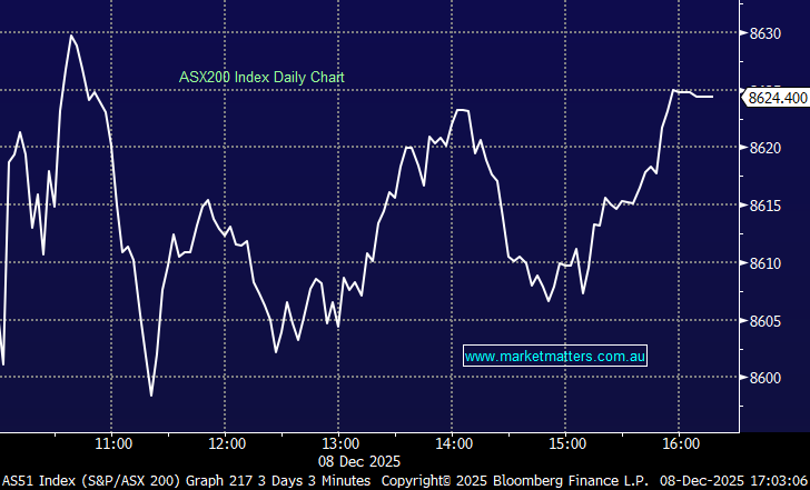 A good day to have the Market Matters Christmas lunch, with a very quiet session playing out across the board. The ASX inched higher by the close as softer-than-expected GDP data briefly rekindled hopes the RBA might not need to tighten rates in 2026.