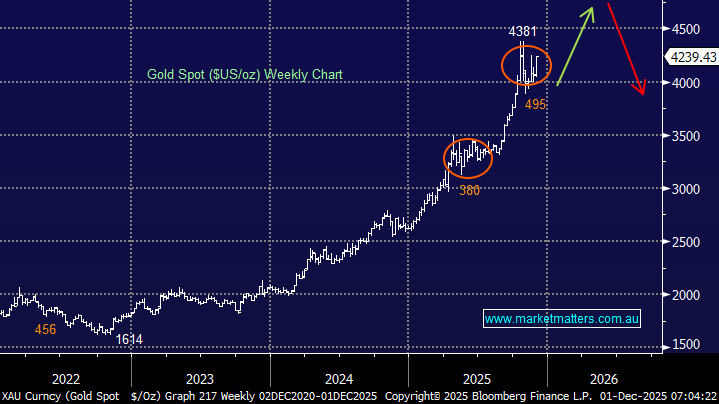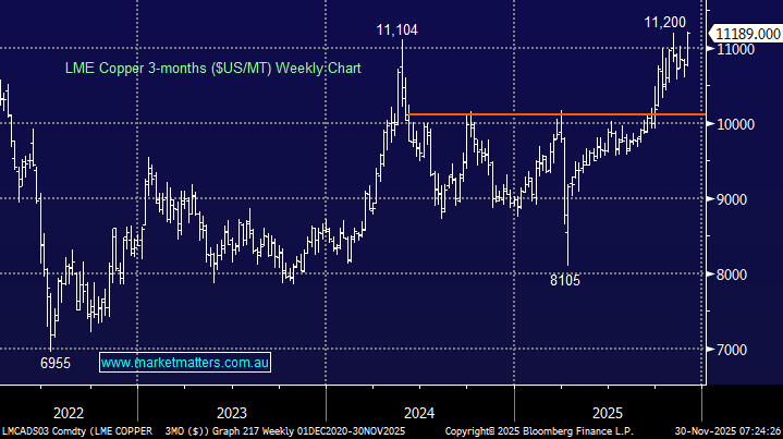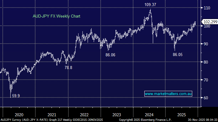 The ASX 200 bounced back +2.4% last week following dovish comments from several Fed members. Gains were broad-based, with tech, materials, healthcare, and the industrial sectors all advancing by over 4%; only the Energy sector failed to advance. This week's rise on the ASX came despite Wednesday's higher-than-expected local inflation figures, which prompted speculation from some that the RBA may hike interest rates next year. Even so, the future path of Australian interest rates remains debated, and some market economists maintain the RBA could still cut rates from today's level of 3.6% - MM believes there will be no change, just plenty of speculation until 2027.