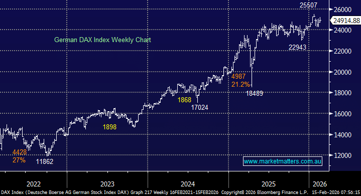 It didn’t feel like it on Friday afternoon as the ASX200 plunged more than 125 points, but the index still managed to finish last week up +2.4% after one of the most violent weeks of reporting season we can remember - 10% swings in either direction were almost pedestrian! The heavyweight banks and resources offset broad market weakness, led by any stocks feared to be at risk of AI disruption, with selling gathering momentum from already panic-like levels. The dominant themes were very binary in nature: