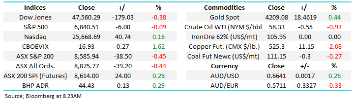 The ASX edged higher on Thursday, with record-breaking copper prices doing the heavy lifting as interest-rate-sensitive sectors sagged under rising bond yields. Bond markets have now priced out any chance of an RBA rate cut this cycle, and traders are assigning a 15% probability of a rate hike as early as February. Strong household spending data for October, the biggest jump in two years added weight to the RBA’s concern that inflation remains too sticky.