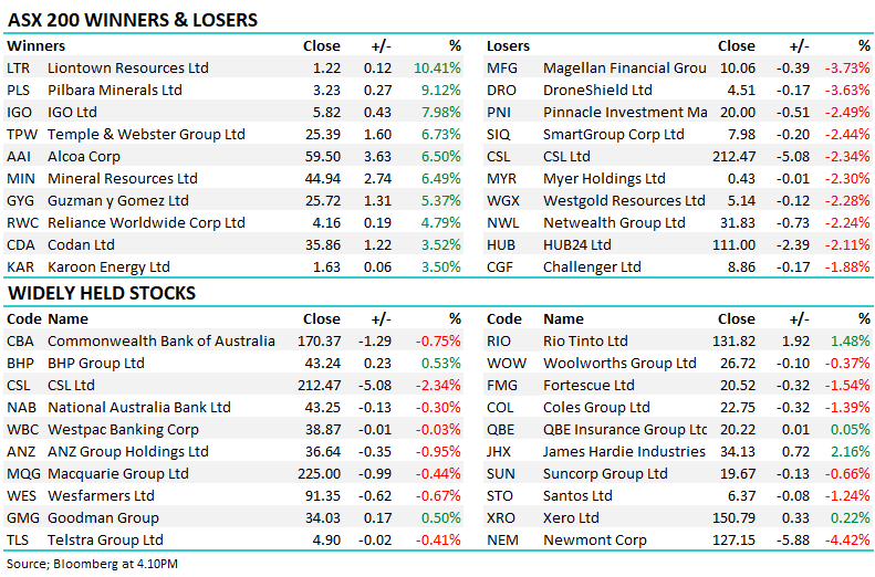 The ASX200 fell -0.7% on Wednesday, with volatility resurfacing in a session that saw stocks falling alongside gold and cryptocurrencies. . It was a day in which assets favoured by retail momentum traders bore the worst losses, among them precious metals, crypto and companies in the artificial-intelligence space.