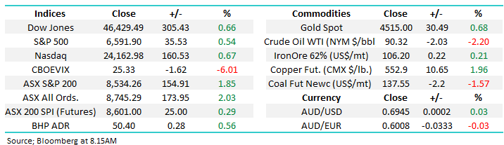 The ASX finished modestly higher but well off its intraday highs after an early relief rally faded as the geopolitical backdrop in the Middle East remained fluid. The index surged more than +130pts at the open, briefly pushing 8500, before momentum cooled as US futures slipped gradually through the day.