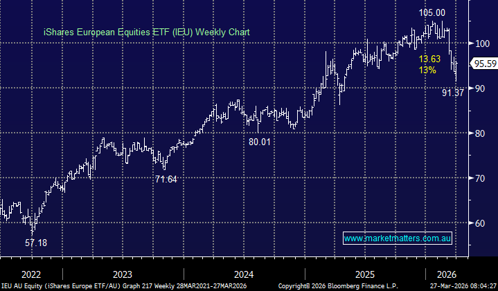 The ASX200 ended a tough week down -2.2%, extending March’s retreat to -8.4% with more losses likely on Monday. Materials (-7.1%) and Tech stocks (-4.2%) continued to lead the decline, as fears around global growth and inflation escalated as the war dragged on with no end in sight, and oil prices looked increasingly comfortable above $US110. On Friday night, selling intensified into the U.S. afternoon session after Reuters reported Iraq had declared force majeure on oilfields operated by foreign companies, while President Trump said he was not seeking a ceasefire with Iran. Now entering its fourth week, roughly in line with Trump’s initial timeframe, the conflict is nonetheless unsettling Washington, as Iran’s ability to disrupt oil markets with relative ease continues to drive global angst.