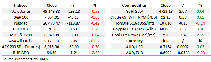 Yesterday saw the ASX200 fall another 62-points finally breaching the psychological 7000 area in the late afternoon, selling was fairly broad based with well over 60% of stocks down on the day although gains in the heavyweight banking & healthcare sectors stymied the losses.
