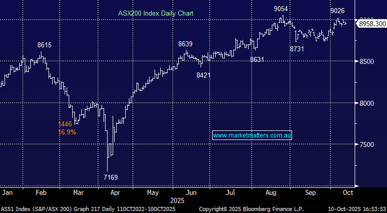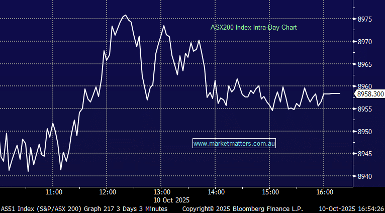 A classic risk-on day for local equities, with investors embracing the dual engine of bank strength and a relentless gold bid. Materials were the clear standout, but the breadth of today’s rally was also impressive, with most sectors participating as the new quarter seemed to attract new $$. Healthcare has been the real index laggard in recent periods but today saw an obvious change of trend with CSL having the biggest influence from an index perspective, up nearly 4%.