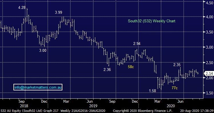 South32 (S32) -0.47%: full year result was pretty poor vs last year but reasonable to what the market was after. EBIT was down nearly 70% but landed around 4% ahead of the market, they paid a 1USc dividend and extended the current buyback by 12 months – it has been paused but they plan to “re-commence the program as COVID-19 related operational risks subside and our financial performance improves.” The presentation wasn’t overly bullish with the company focussing on cost cutting to protect against volatile pricing. They are in the midst of offloading a number of assets.