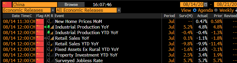 As mentioned above, Chinese data was weaker today, a bunch of metrics below expectations however stocks looked through it, and move higher from the 11.30 low,