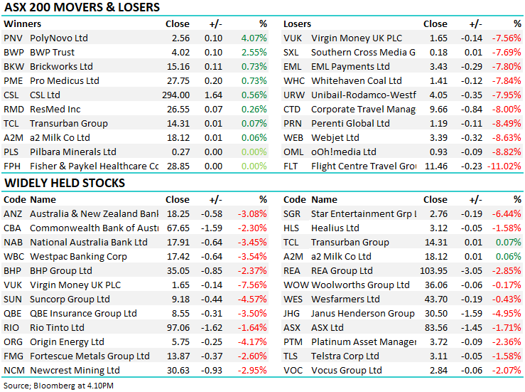 Overall, the ASX 200 fell -148pts / -2.48% today to close at 5817 - Dow Futures are trading down -142pts/-0.56%