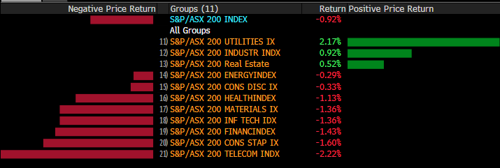 Two extremes – the Defensive Utilities were well supported while the Telcos were weak.