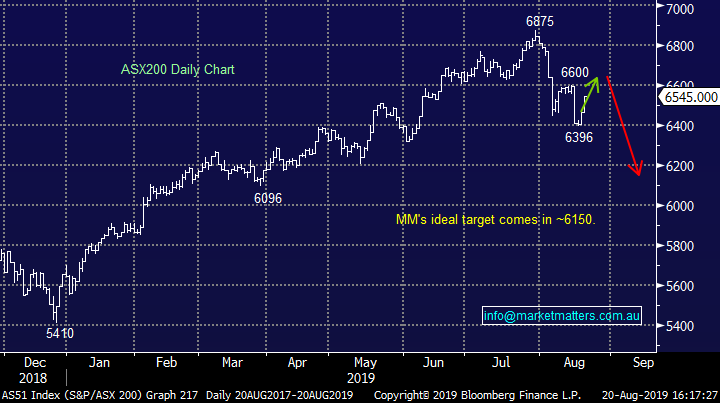 A strong rebound for local stocks today with broad based buying across all sectors despite a slightly weaker than expected result from BHP. Energy the standout sector while Gold continued to lag highlighting the growth v risk theme that has been ebbing and flowing of late. Company results were strong overall today, although some took time to digest during early trade. Kogan (KGN) and Seek (SEK) a case in point here with the FY19 numbers a slight miss but FY20 growth was firmly in focus and they both impressed there. Estia Health (EHE), a business that has had a tough 12 months rallied +8% today, a good result for the MM Income Portfolio while Bluescope (BSL) snapped back from yesterday’s sell-off to close up +7.69%.