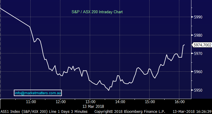 An overall move today of -21pts or -0.36% with the index settling at 5974 – Materials providing the biggest weight on the mkt.
