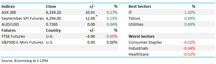 The markets were supported today as both the banks and materials edged higher, the index making fresh 10-year highs above the close of Wednesday.