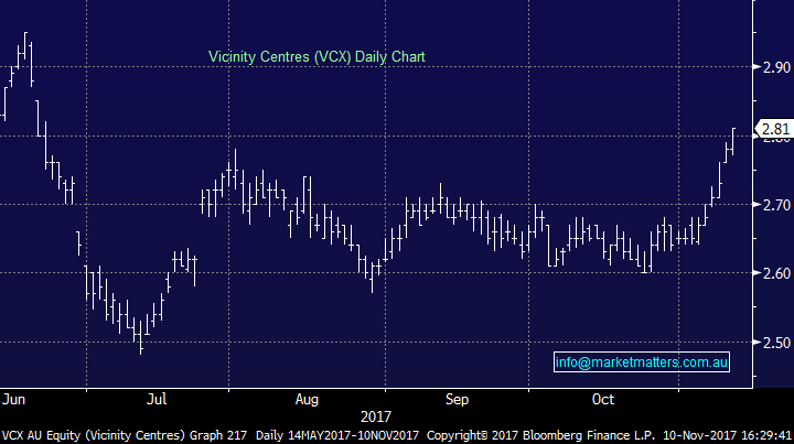 It’s been a busy week here at MM with changes to both the Platinum and Income portfolios. A2 Milk (A2M), which we added to the Platinum, struggled today, however we are already up over 3.5% on the position after buying into weakness on Wednesday. Similarly, Vicinity Centres (VCX) has broken it’s range since we purchased on Wednesday in the Income Portfolio.