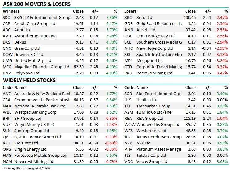 SkyCity Entertainment (SKC) +7.36%: one of the reporting season stragglers, SkyCity operate 3 casinos in NZ as well as one in Adelaide. Profit took a hit given its exposure to NZ where lockdowns were far more stringent than ours, falling nearly 60% in the year to $NZ66.3m, though this was 7.5% better than analysts had pencilled in. Even better was guidance – EBITDA for FY21 is expected to come in higher than FY20 which came in at $200.7m, already ahead of the markets expected FY21 print of $190.6m. Key to the forecast is the Adelaide casino which is running cashflow positive since re-opening in late June as well as an influx of users on the NZ online casino offering.