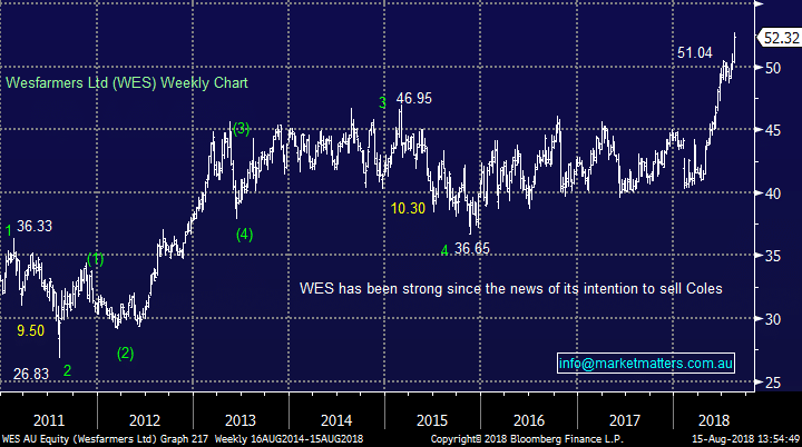 Wesfarmers (WES) $52.32 as at 15/08/2018Event