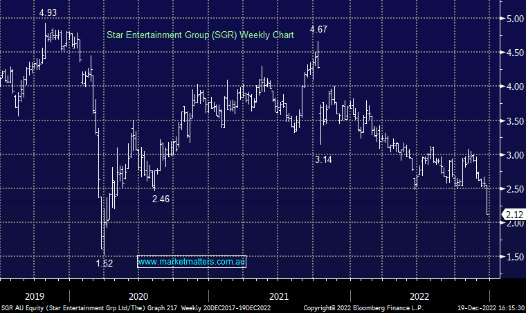 SGR -17.83%: Was hit today following changes to taxation in NSW that seemed to blindside SGR with the company saying that no details have been made available in relation to the potential reforms including as to how the taxes would be levied or applied at this stage. They went on to say there had been no consultation from the New South Wales Government and they were seeking to urgently engage with the NSW Government as to the sustainability of the proposed tax changes and the impact on its business . They say it is too early and there are simply too few details to ascertain the potential impact of the proposed changes.