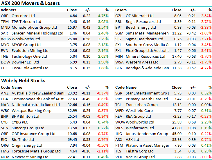 On the mkt today, Woolies reported good sales numbers (more on that below) and that dragged up the staples while the Healthcare stocks lagged. An unpopular call and we did sell this too early however CSL is showing signs of weakness here trading at $138.93. The grind up from sub $120 has been a struggle over the past 4 months and buyers here are looking exhausted. Another tight range today of +/- 26 points, a high of 5934, a low of 5908 and a close of 5909, down -10pts or -0.17%.